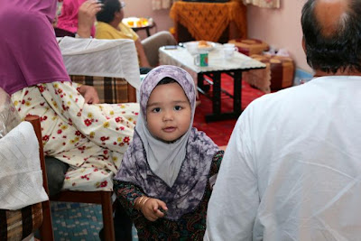The pictures below, captured by my BIL, show the merry atmosphere of Raya as the relatives came to visit. My daughters helped to prepare and cook the mee goreng tauhu and they did it fast. They learnt quickly from the trial and error the day before. :)